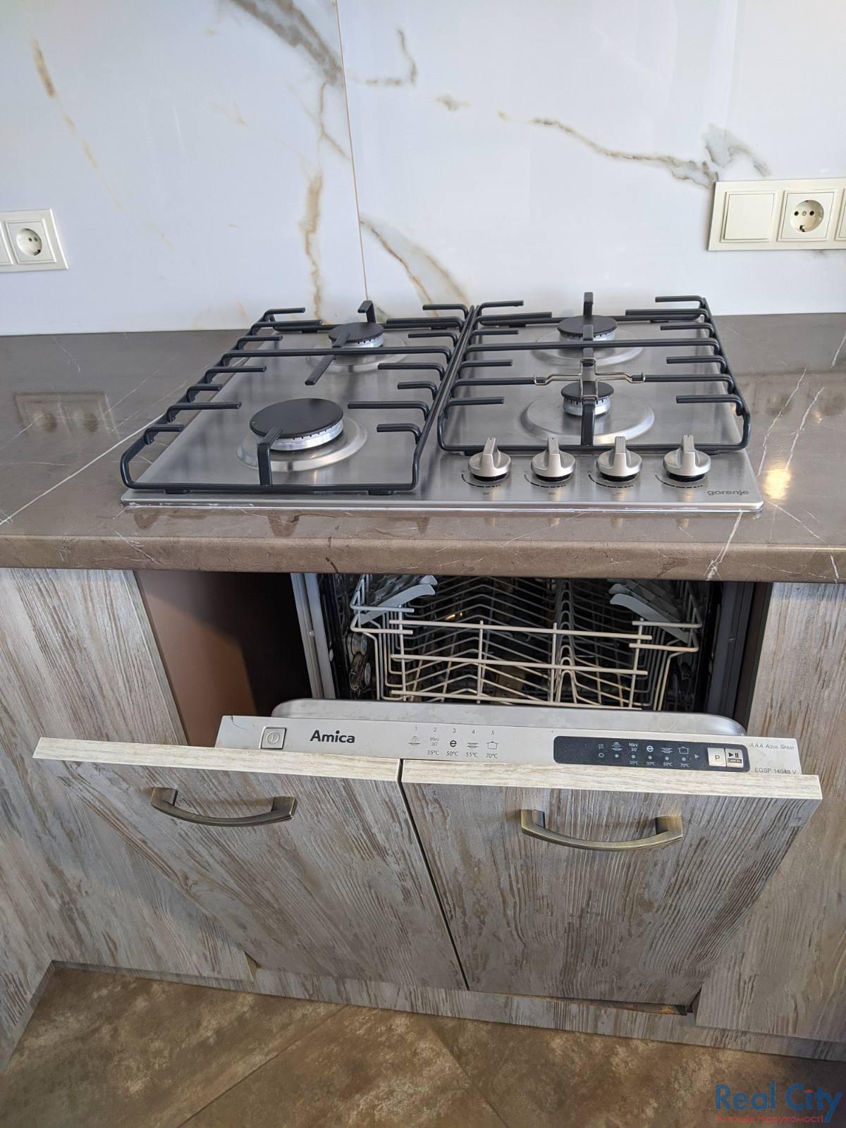– Уся поб.техніка: (пральна машина, посудомийна машина, мікрохвильова піч, варильна поверхня, електрична духовка, витяжка, холодильник.